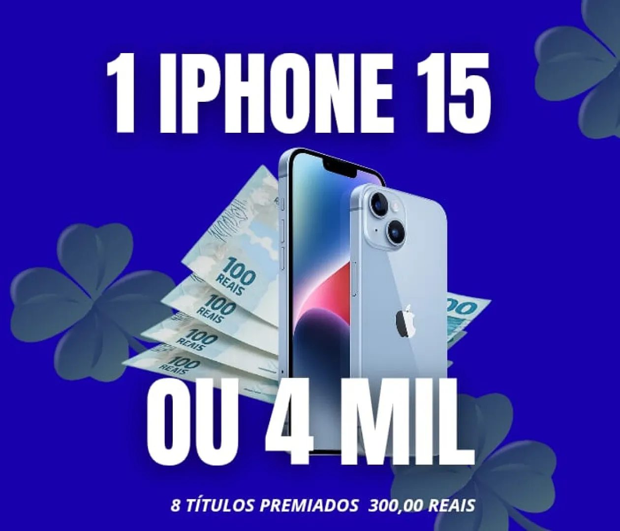 Sorteio Premiação Principal: 1 iPhone 15 lacrado ou 4 mil reais na sua conta.